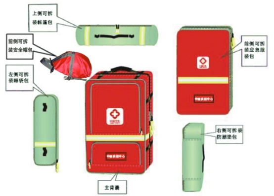 個人衛生應急裝備,是按照《衛生部衛生應急裝備參考目錄(試行)》要求“衛生應急指導函[2011]193號”,國家大型衛生應急救援工作的經驗研制開發。該裝備采用“1+X”設計理念,“1”是個人攜行基本裝備,“X”是特殊工作環境的選配單元。裝備主要由主包和幾個外掛包組成,主包內有幾個不同功能的應用單元包,外掛包用于放置帳篷、睡袋、自充氣墊、安全頭盔包等體積較大的物品。