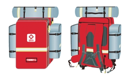 在主箱體正面和前側服裝包的正面印有中國衛生專用標識,主箱體正面設計有魔術貼,可以根據使用單位需求靈活粘貼單位名稱或隊伍類別。